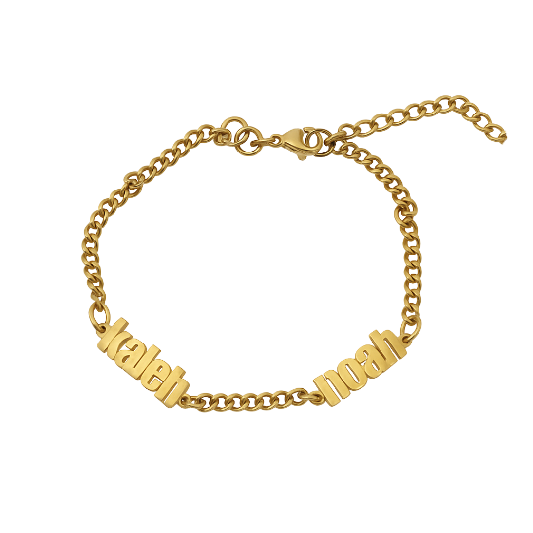 The Together Bracelet can be customized with up to four short names. You have the option to include 2, 3, or 4 names. It is waterproof, sweatproof, and heat-resistant, and it comes with an adjustable chain, making it suitable for any wrist size. We’re sure you’ll fall in love with this design just as we did!